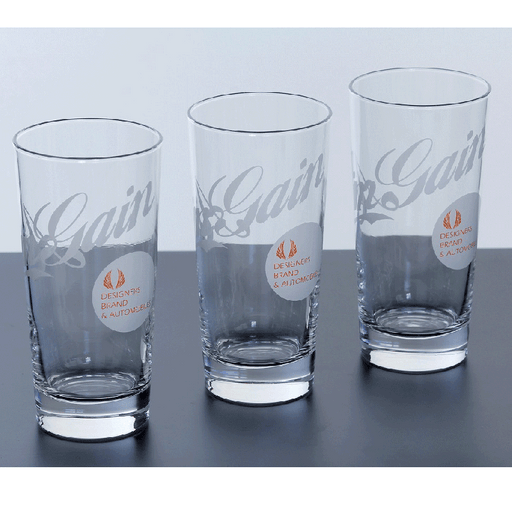 AimgainThe color logo is white and orange. \nIt has the new AIMGAIN logo \n. The glass is made of a shatter-resistant material.
