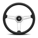 Momo Retro Steering Wheel 360 mm - 4 Black Leather/Wht Stitch/Brshd Spokes